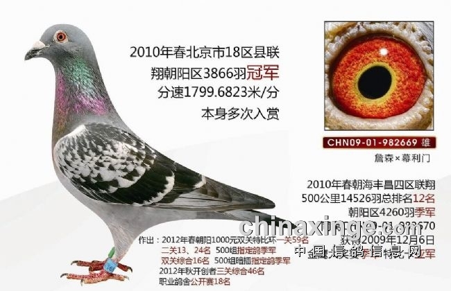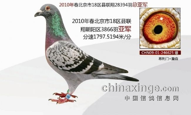 双子星环号分别是总冠军CHN09-01-982669、总亚军CHN09-01-246625,均是雨点黄眼雄鸽,出自詹森X幕利门血系。其中总冠军还获得2010年春赛朝阳、海淀、丰台、昌平四区联翔500公里14526羽总排名12名,朝阳区4260羽季军,同窝CHN09-01-982670获得2009年金鹰大奖赛季军,特比卡亚军……详细文章>>