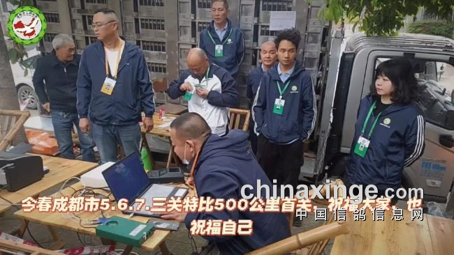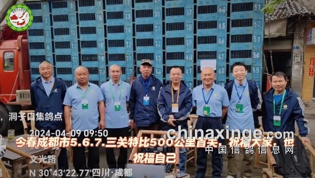 2024年春季成都市第五届“蓉城杯”三关特比环第一关吹响号角,于4月9日在金牛、温江、国防乐园、新都区等10个集鸽点完成上笼,总计7982羽参赛鸽。比赛已于4月9日上午9点03分开笼放飞,司放地秦岭,司放坐标经度106°55′27″,纬度34°14′28″,空距500公里。