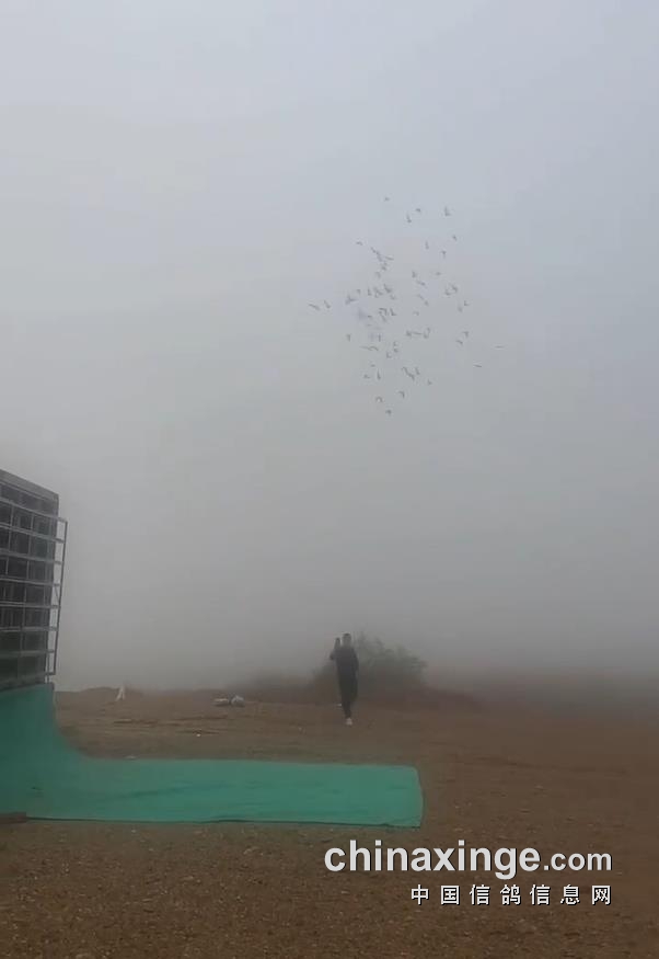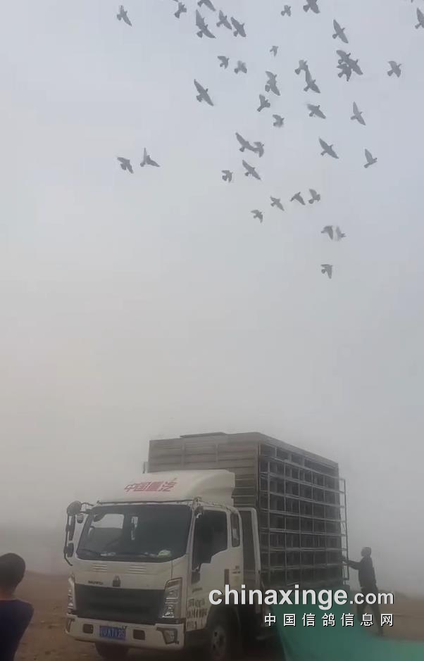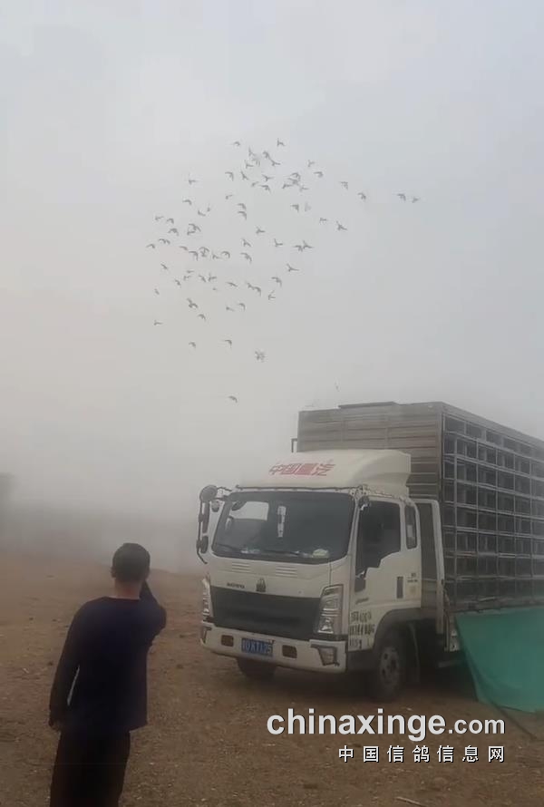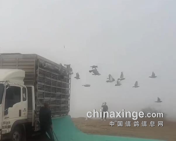 视频的画面里,一辆赛鸽车在清晨的大雾中开笼放飞,一群赛鸽迅速出笼,踏上归家之路!