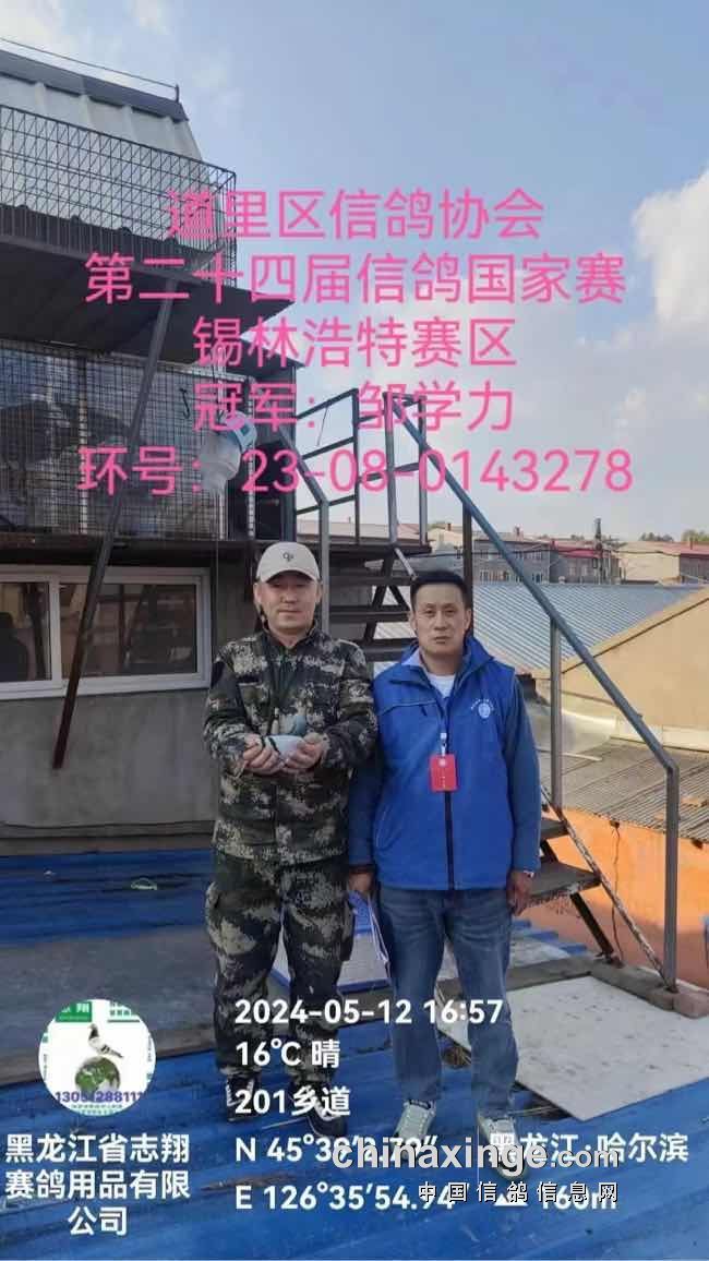 15点34分37秒,邹学力的2023-08-0143278赛鸽报到,飞行空距854.542公里,分速为1408.681米/分,超越前者,赢得本场国家赛冠军。
