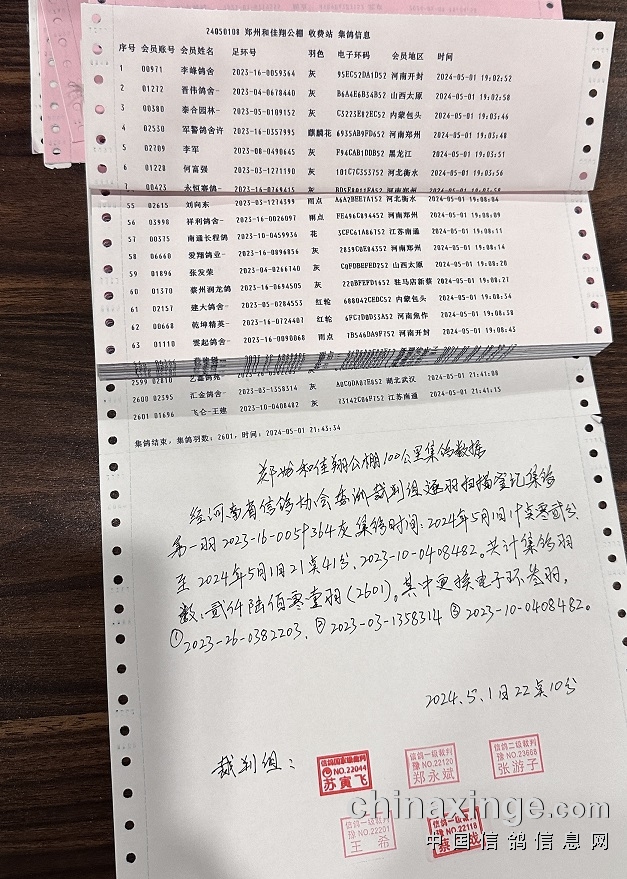 今年公棚100公里收费站5月2日放飞2601羽,三天归巢2451羽赛鸽,归巢情况不错。公棚公告如下: