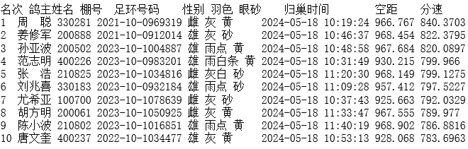 宿迁市信鸽协会前10名成绩:查看前100名>> 泗阳众兴鸽会直播数据>>