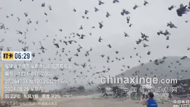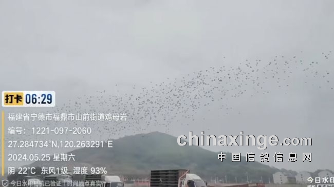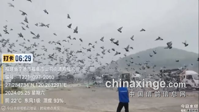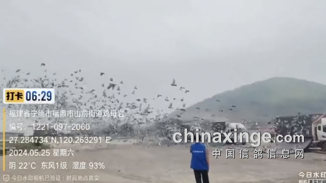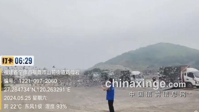 5月25日早上6点30分,福建泉州飞龙赛鸽俱乐部2024年“荣耀杯”第一关比赛在福鼎开笼,空距334.825公里,共计上笼7012羽赛鸽,司放地天气阴天,东风1级。