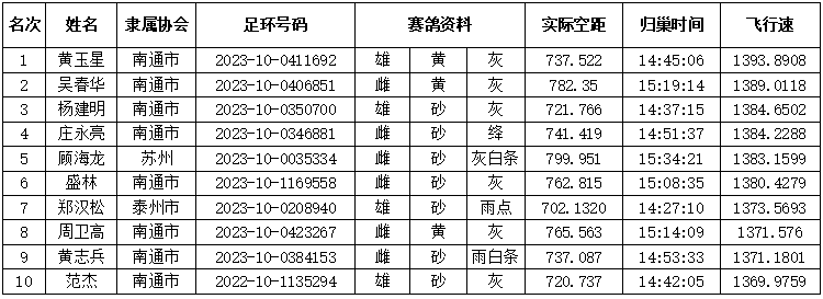 江苏省信鸽协会公布的六个级别成绩,点击链接查看: