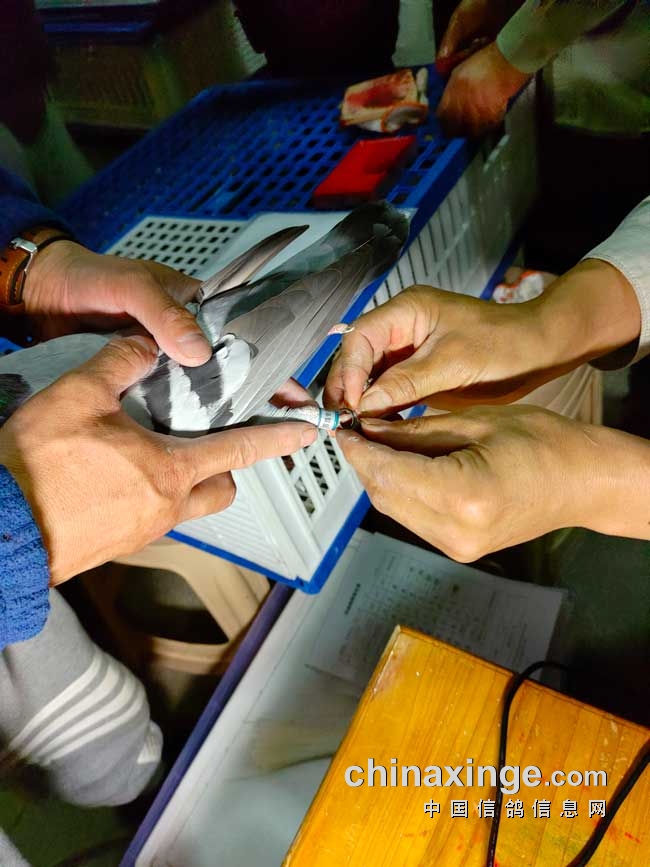6月5日晚上,盐城市信鸽协会也进行了集鸽。在上笼现场,鸽友们一起交流经验,鉴赏参赛鸽,然后封环、盖章、送鸽出征。最终,盐城市总计集鸽197羽赛鸽,期待它们凯旋,摘金夺银!