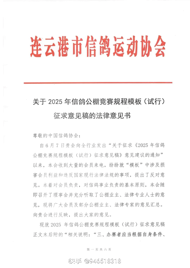 连云港鸽会关于公棚规程模板(试行)的意见书