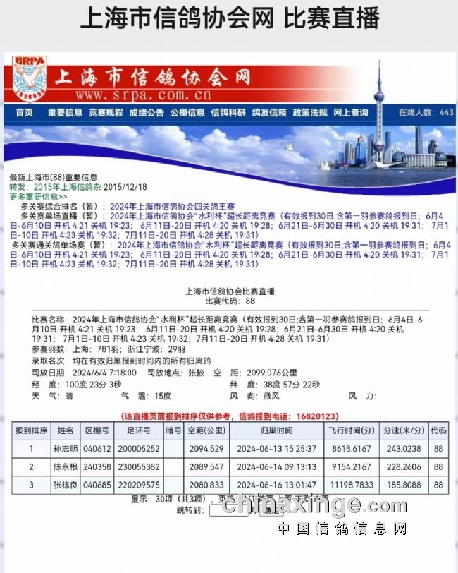 此次宁波鸽会2000公里张掖超远程赛事,在宁波市鸽协会长包建民先生的周密组织和精心协调下,联合上海市信鸽协2024年“水利杯”超长距离竞赛,于6月4日早上7点18分在甘肃省张掖市高台县放飞,司放地东经100度23分03秒、北纬38度57分22秒,天气晴,气温15度,微风。