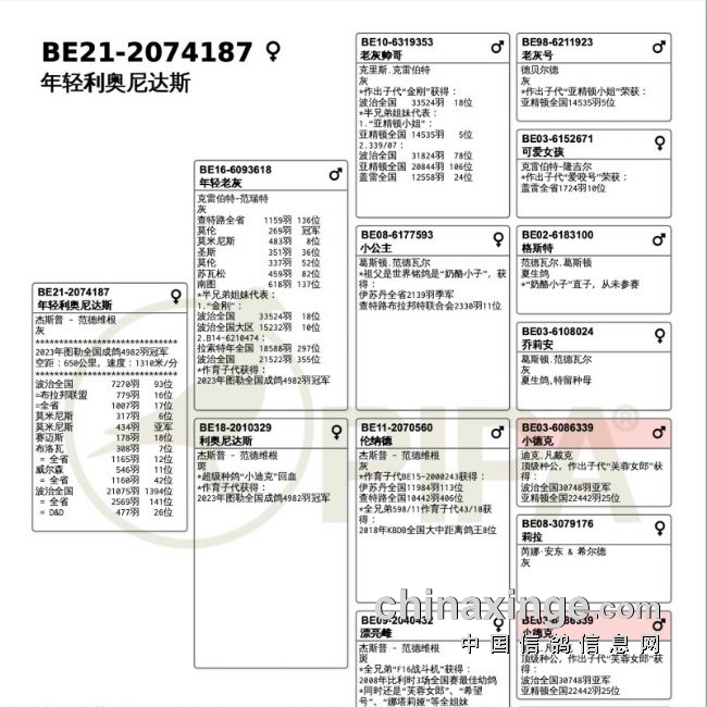 2023年图勒国家赛获得成鸽组全国冠军的是杰斯普-范德维根,他的一羽BE-21-2074187灰色雌鸽在下午15:37分率先完成打钟,空距为637.388公里,平均分速为1307.55米/分,稳坐冠军宝座。
