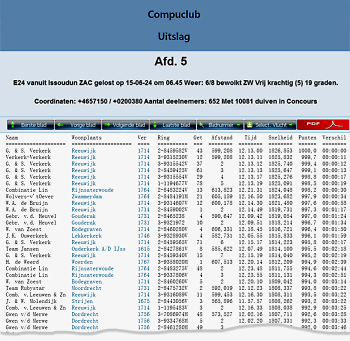 本场伊苏丹NPO赛的1-6名,是佛科克鸽舍清一色的“娘子军”,这6羽雌鸽中有多羽在前一周默伦400公里中距离NPO赛中就已经初显峥嵘,在那场两万多羽赛鸽同场竞技中,佛科克一口气拿下了4、5、6、7、8、10名,可说是这次包揽1-6名的一次预演。