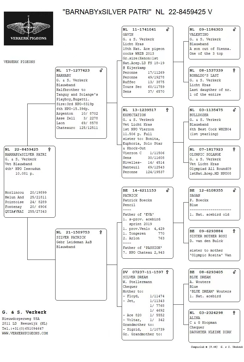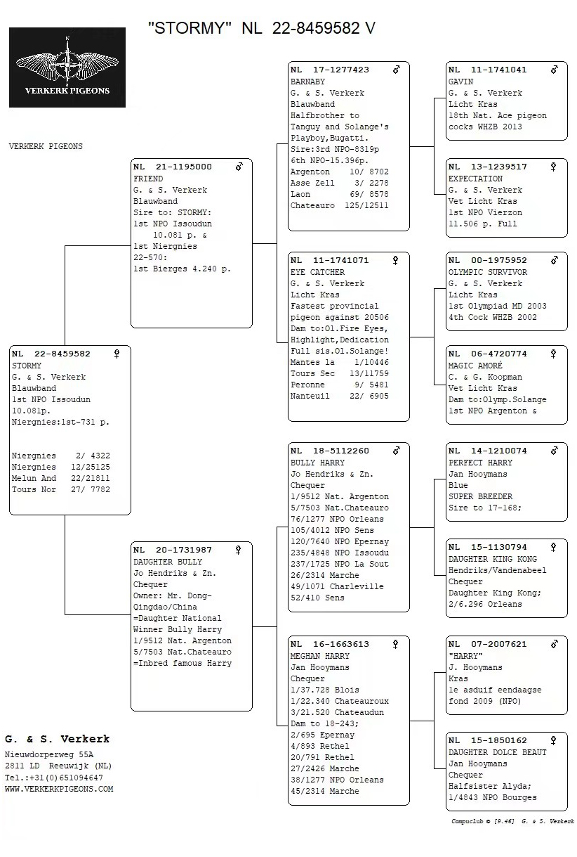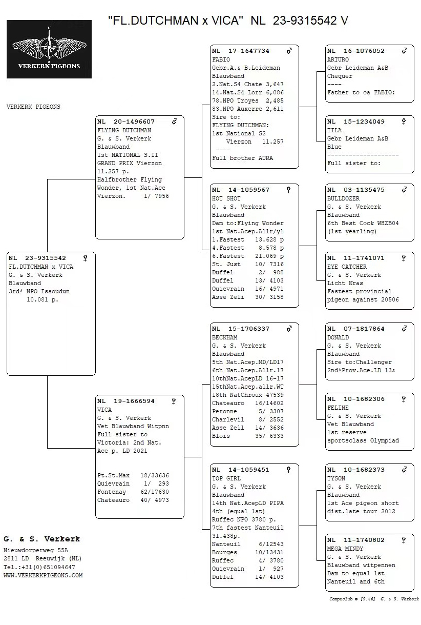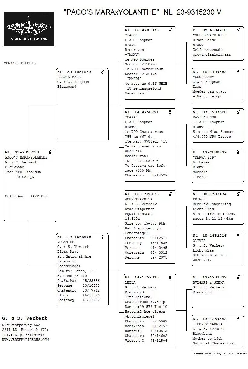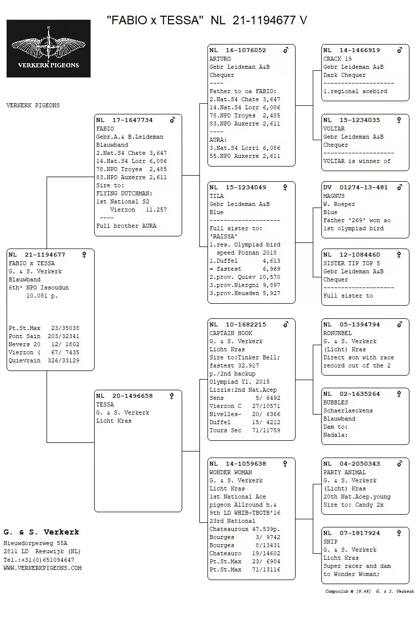 佛科克,“约翰·特拉沃尔塔”ד莱拉”代表直女,本身获Fondspiegel全国幼鸽鸽王9名,蓬特圣马斯33636羽15名、查特鲁7962羽13名、佩罗讷16670羽23名、布鲁瓦11576羽26名等。