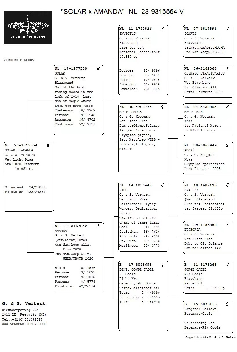 佛科克,“心想事成”ד神奇爱神”代表直子,2018年最好的雄鸽之一,本身获2018年PIPA全距离全国鸽王、长距离全国鸽王、查特鲁3769羽NPO赛10名、佩罗讷7238羽11名、亚精顿8702羽国家赛36名、查特鲁7151羽国家赛52名等。
