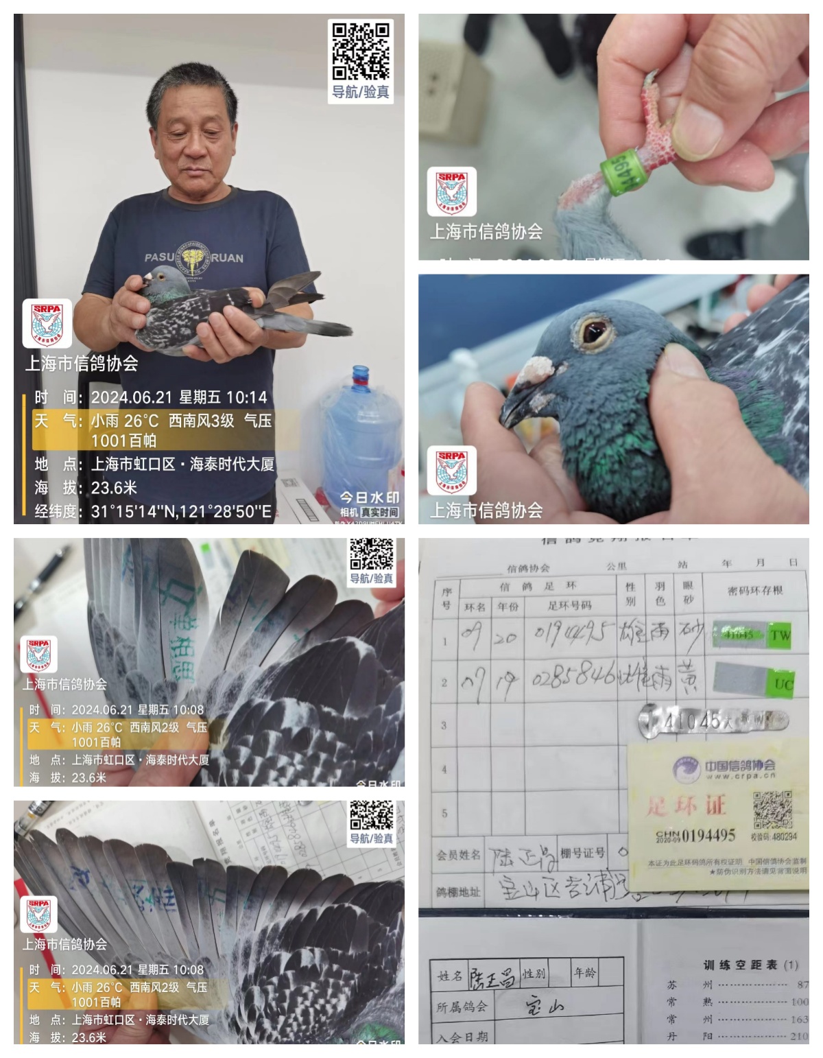 6月21日上午7点09分27秒,陆正昌的200194495赛鸽抵达归巢,飞行空距2095.674公里,分速为136.2026米/分。这是上海超远程的一羽老选手了,在2023年上海超远程中赢得了50名的好成绩,当时的飞行空距为1703.667公里,分速为152.7482米/分。