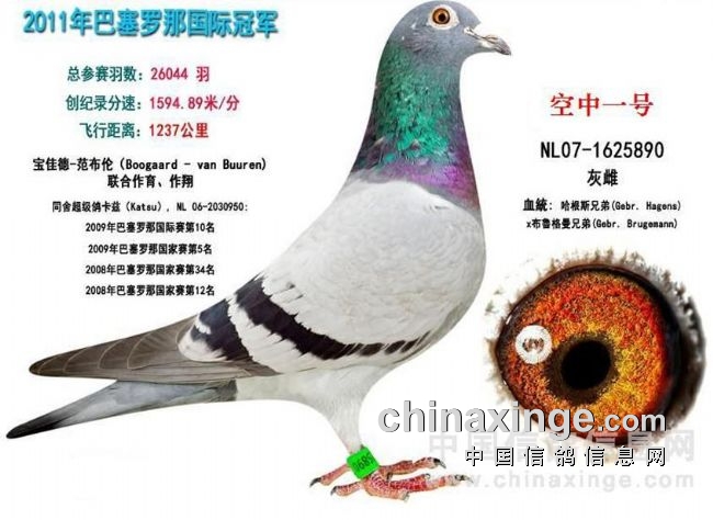 2011年巴塞罗那26044羽国际冠军、荷兰全国总冠军“空中一号”