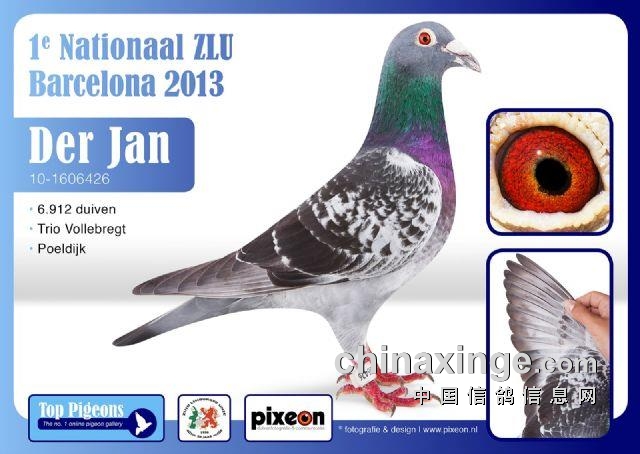 2013年巴塞罗那放飞25382羽,荷兰全国6912羽总冠军