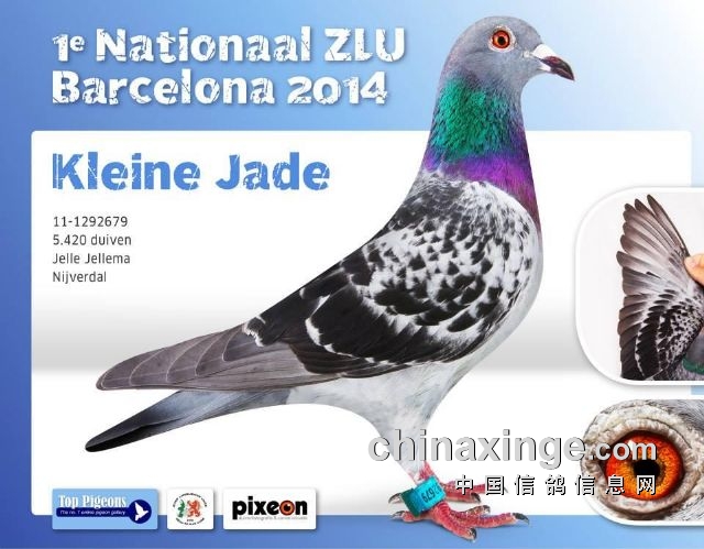 2014年巴塞罗那21143羽国际冠军,荷兰全国5420羽总冠军:耶勒·耶勒玛“小碧玉”