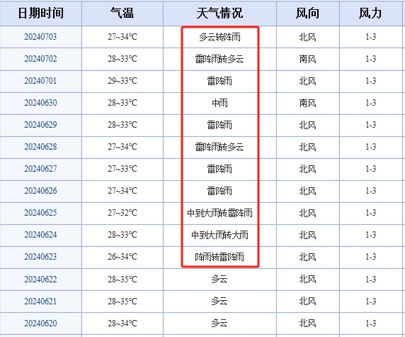 据不完全统计,从今年6月1号开始,在福建、广东沿海地区已经举办了上百场比赛,而查看过往天气预报可以看到,沿途城市几乎有一半多的时间都在下雨。