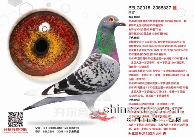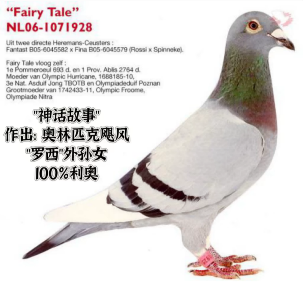 “内罗”在2015年一举夺得拉索特年全国幼鸽赛9760羽冠军,12308羽分速最快,实力顶尖。