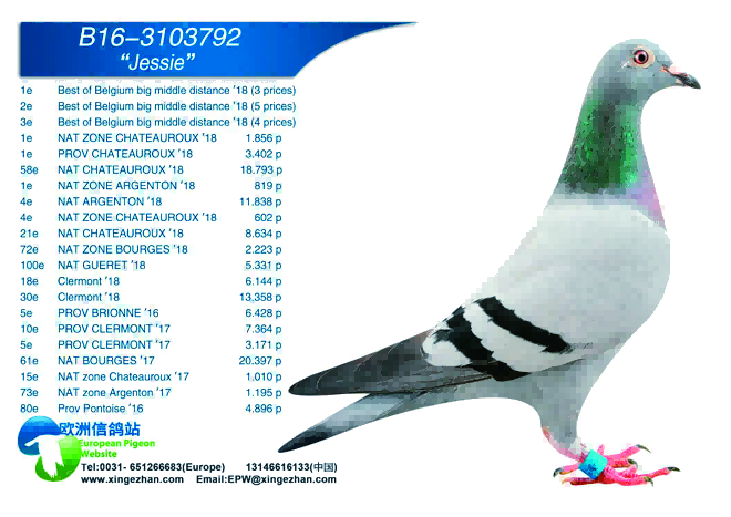 “内罗”进种鸽舍,第二年,便作出子代“杰西”,“杰西”不负厚望,于2018年拿下KBDB比利时三场比赛最佳赛将的荣誉;“杰西”再传优良基因,其后代在2025年拉索特年全国一岁鸽赛中登顶冠军,实现了冠军血脉的传承。