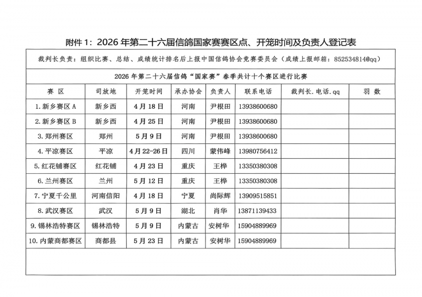 近日,2026年第二十六届信鸽国家赛日程已经公布,春季竞赛将于4月启动。竞赛项目分为短距离国家赛A、短距离国家赛B、中距离国家赛A、中距离国家赛B、中长距离国家赛A、中长距离国家赛B、长距离国家赛A、长距离国家赛B等多个赛项。