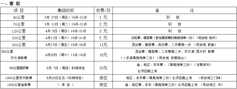 昆山市信鸽协会2026年春季竞翔计划