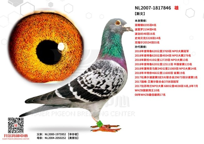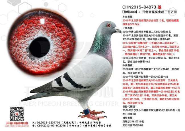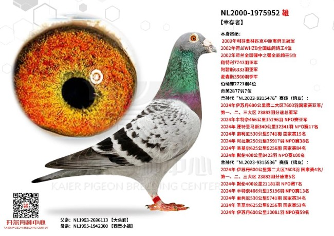 作为连续四代在荷兰出鸽王冠军的幸存者,他和他的后裔们也完成了一项壮举,不仅3代都与魔幻爱神结合育种,且表兄弟也参与其中,重要的是都有不错的发挥,由此可见他们与魔幻爱神的合配性。鸽飞一滴血的奥秘,在这个家族的传承中得以具象化呈现:血脉纯度与竞翔能力不断被强化。