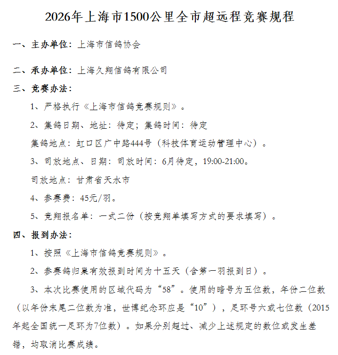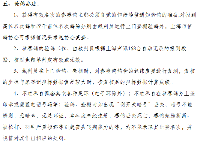 上海市鸽会春季长距离鸽王赛规程