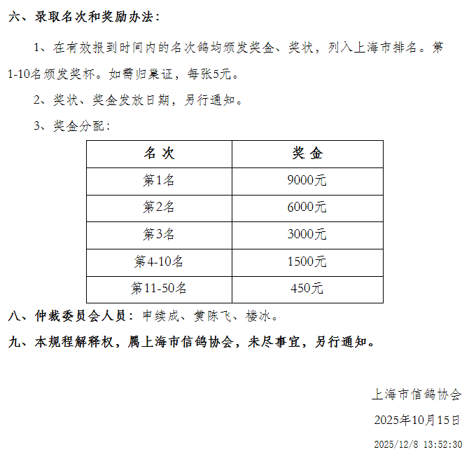 上海市鸽会春季中距离鸽王赛规程
