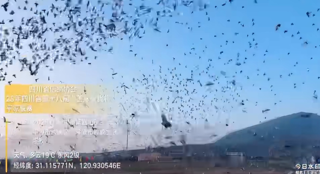 2026年4月23日上午6点33分,由四川省信鸽协会主办的第二十六届信鸽国家赛暨四川省第十八届信鸽比赛在甘肃平凉司放地准时开笼。司放地平凉今日晴间多云,平均气温从5℃至22℃之间,伴有3级西南风。