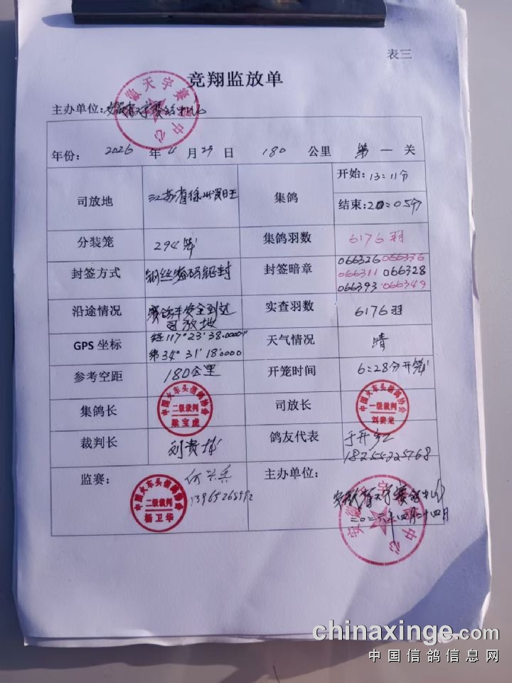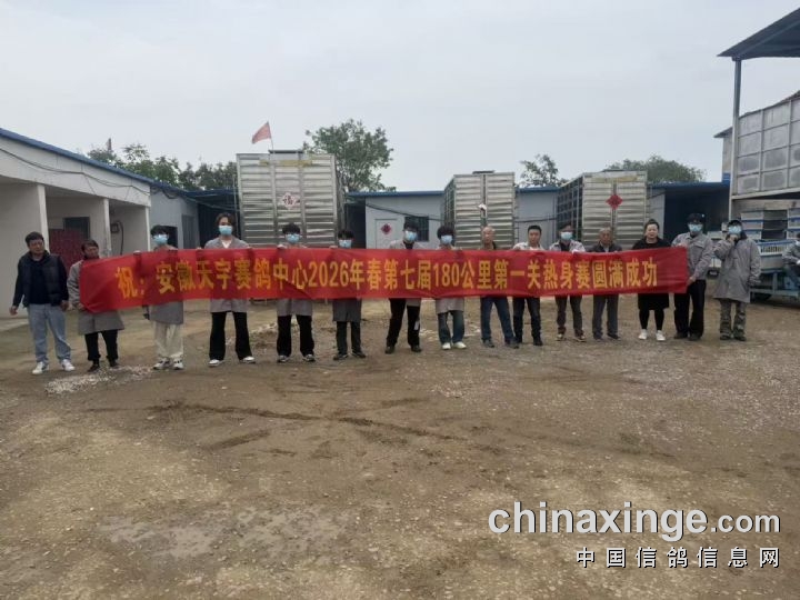 4月24日早6时28分,安徽天宇赛鸽中心第一关热身赛,在徐州贾汪开笼放飞。本次比赛集鸽6176羽,参考空距180公里。