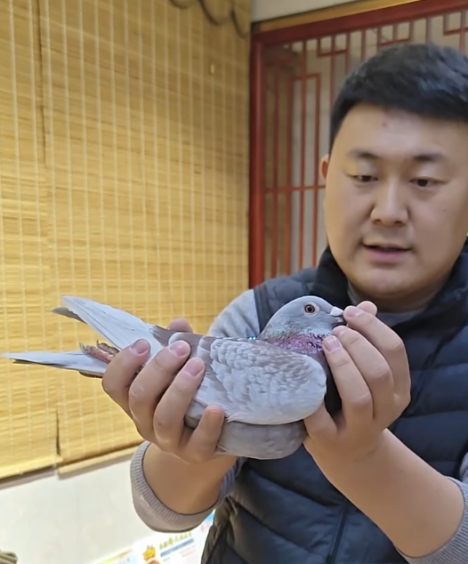 咱也不怕丢人,那时候买鸽子就为了养家糊口,赚个三百五百就行。那只鸽子花了1300块钱买来的,我当时买了六七个。后来其它几个鸽子都卖掉了,这个鸽子耻骨不好,正儿八经卖了两次,都给我退回来了。我当时的鸽舍非常小,一共才9个巢箱,只能在上边放了一个草窝,它自己在那儿。